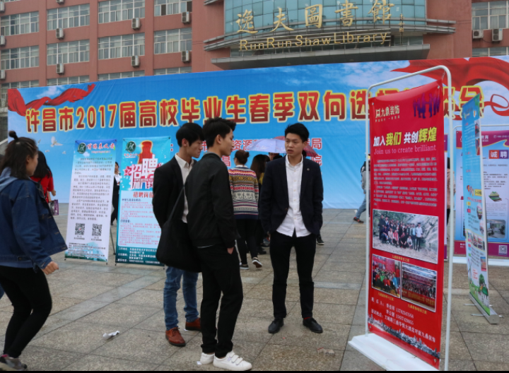 为了更好地解决大学毕业生就业问题,缓解当今大学毕业生就业压力,4月8日上午9时许,由许昌市人力资源和社会保障局和许昌学院联合举办的2017届高校毕业生春季双向选择洽谈会于我校弘毅广场成功举办。法政学院积极宣传,鼓励并组织我院毕业生踊跃参加本次双选会。