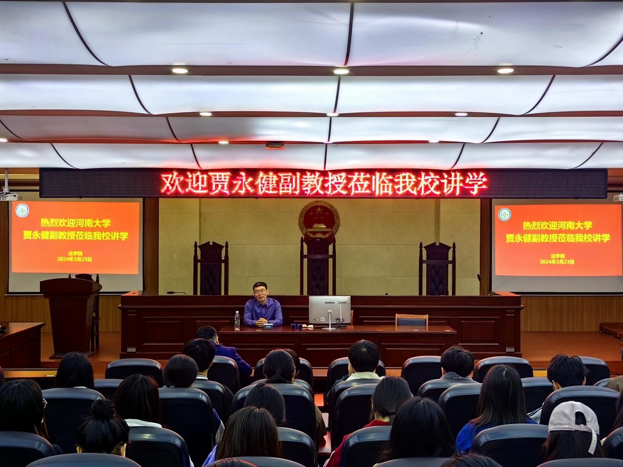 2024年3月23日,应学院邀请,河南大学贾永健副教授为我院师生作“新时代我国法学面临的新挑战与新使命”专题讲座。本次讲座由法学院副院长王忠灿主持,副院长孙敬良以及相关专业教师和部分学生代表参加。
