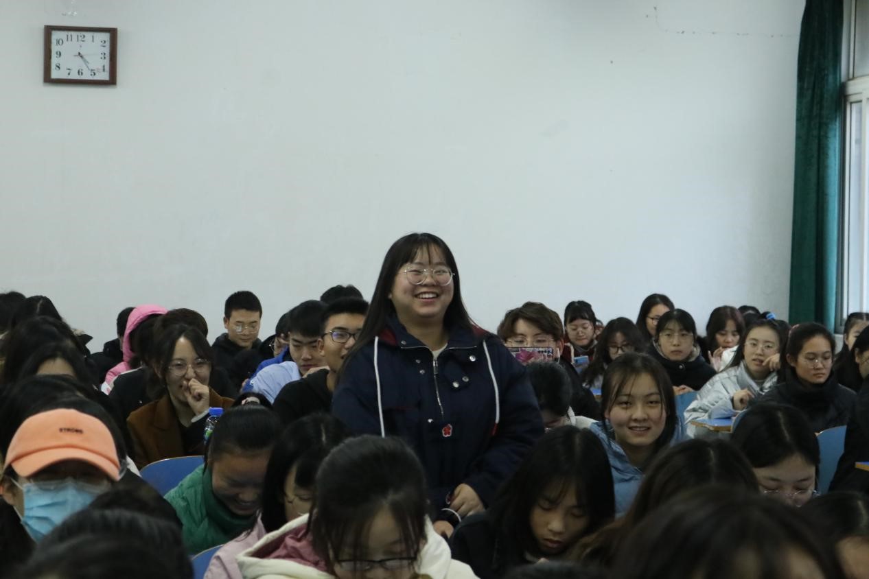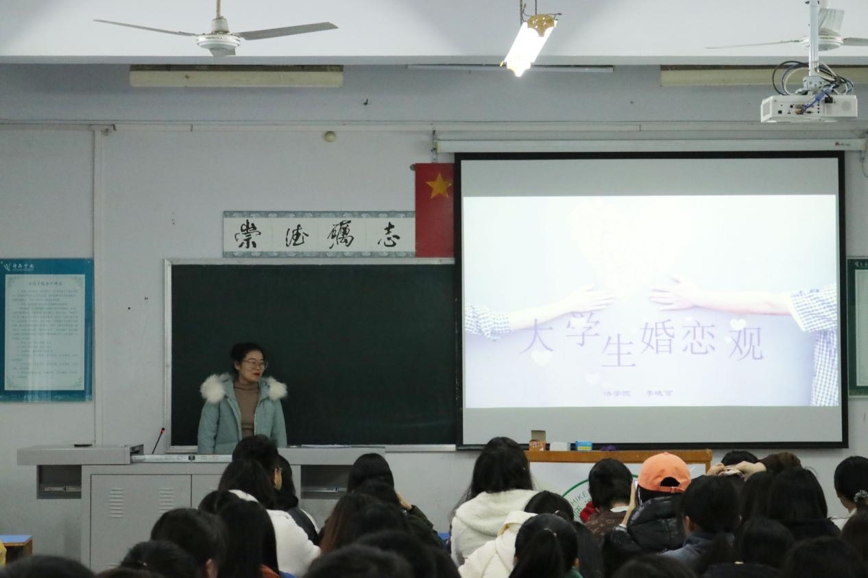伊始,李老师通过影片分享向同学们提问什么是“爱”,大家积极回答并踊跃接受趣味心理小测试,现场氛围轻松活跃。紧接着,李老师从多种恋爱动机、如何克服错误的恋爱心态、如何树立正确的恋爱观等三个方面进行讲解,阐明恋爱要在相互理解,相互信任的基础上进行,同时也提出了一些关于爱情的小建议,告诫同学们一定不要盲目恋爱,不要因恋爱耽误学业。最后,李老师再次分享电影泰坦尼克号中的经典片段,并结合电影片段进行了总结,由电影讲到现实,教导同学们一定要树立正确的爱情观,并向同学们送上了美好的祝福。