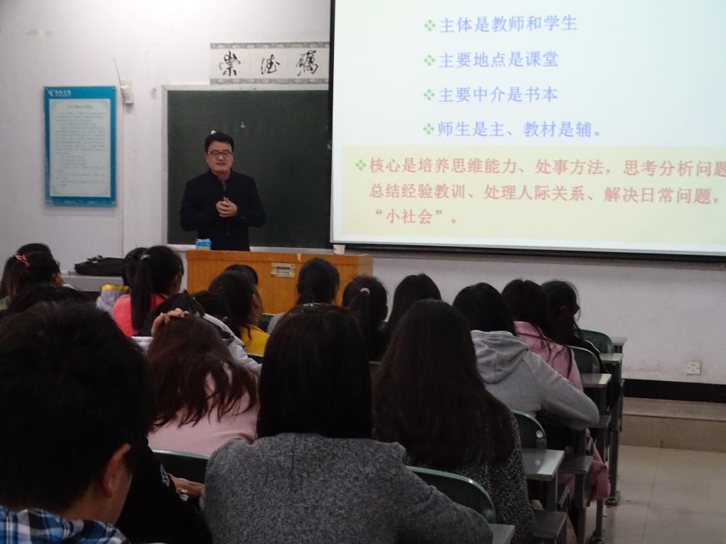 10月28日下午,法政学院于C楼107开展了新生入学教育系列讲座。本次讲座由我院张磊老师主讲,16级全体新生参加并认真聆听了此次讲座。