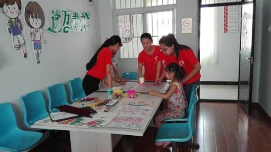许院星志愿服务队成员每天轮流来辅导前来学习的小朋友,细心呵护他们的成长,努力为他们营造一个丰富多彩的假期。孩子们朗朗的读书声如清脆的黄鹂声给炎炎夏日送来了勃勃生机,那一双双真挚而充满求知欲的眼睛使每个队员的心都在悄然融化。这种让人无法用言语来形容的莫名情愫已经急速迅猛的侵蚀着队员们的心,“一定要摘取最耀眼的星星点亮孩子们的求知世界。”成了队员们心照不宣的目标。