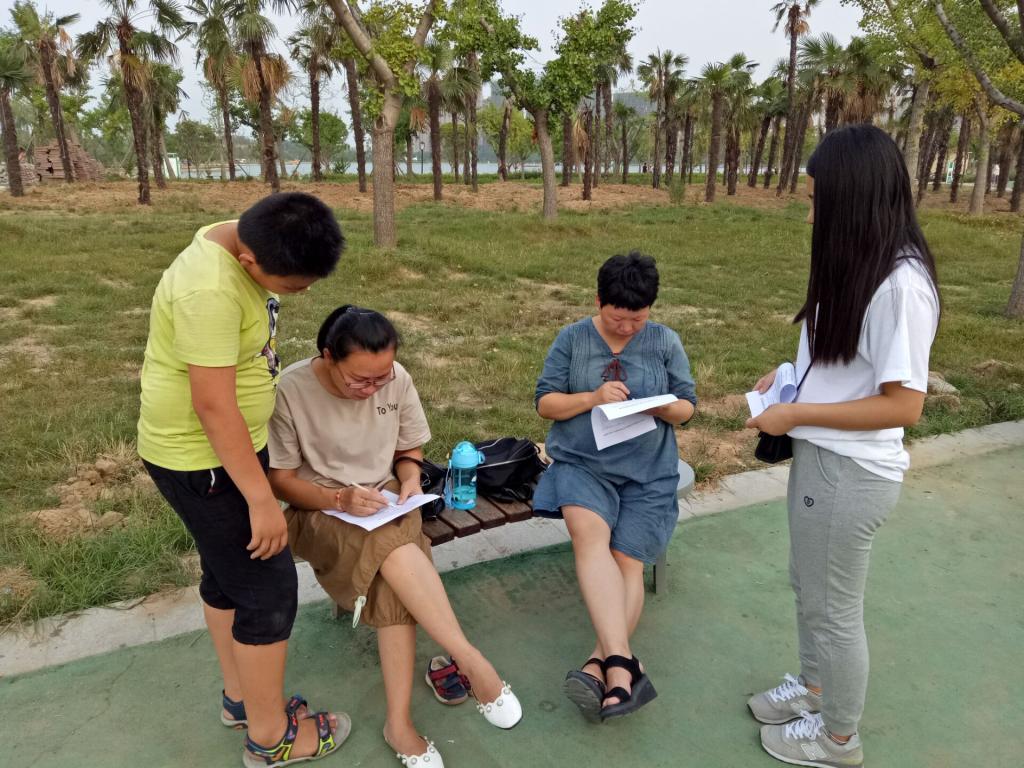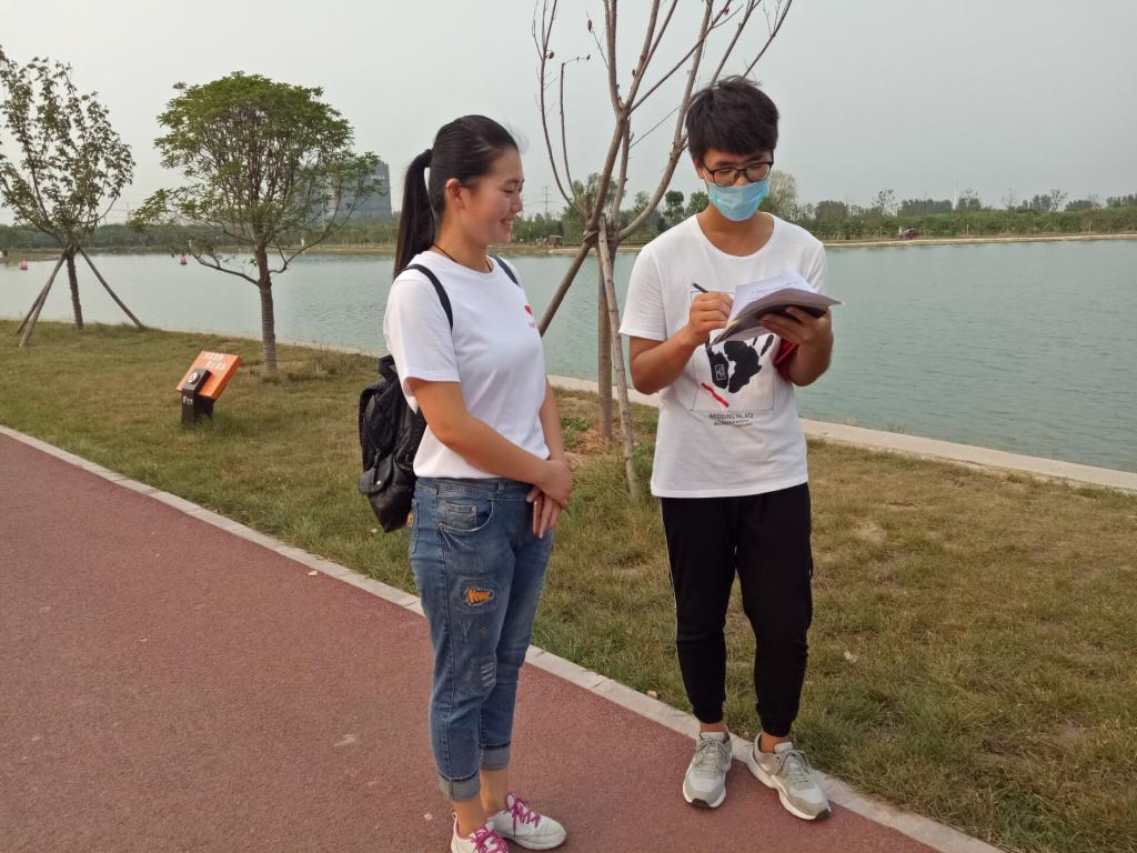 到达鹿鸣湖之后,在带队队长的统一指挥下,各项活动井然有序地进行着。首先,志愿者们拉好横幅、一起拍照留影,用镜头定格住此刻欢乐的时光。接着,志愿者们分发关于消防安全知识的调查问卷,拿着各自的问卷分头进行发放并呼吁市民填写。在填写问卷的过程中,我们的志愿者们充分体现了身为大学生应有的素质。一位年迈的老人主动提出填写调查问卷,但是他不能完全看清楚字,于是志愿者们就热心地逐字逐句念给老人听。在这一过程中我们与民众进行深切交谈,并给他们普及一些关于消防安全的小知识。志愿者们表示这不仅使自身的交流沟通能力得到了提升,而且为他人的安全更增加了一份保障。