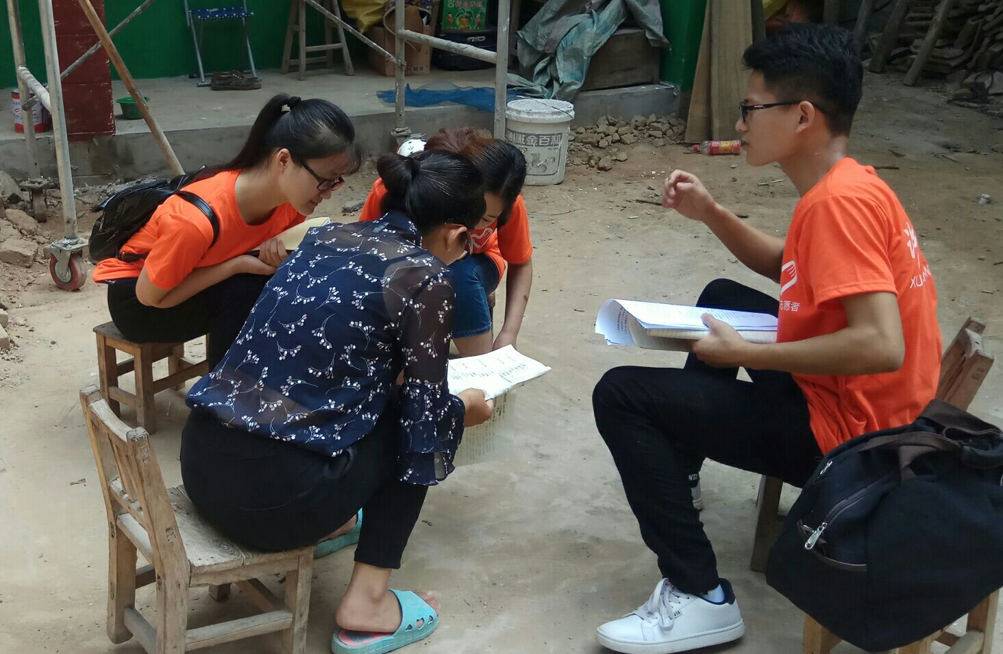 上午,在当地村干部引导下,实践队员们到达前步村村委会,村委会负责人为队员们解读了当地的扶贫文件并初步介绍了一些贫困户的情况。随后,调研实践队员们在村委会办事人员的带领下到各个贫困家庭进行实地走访。