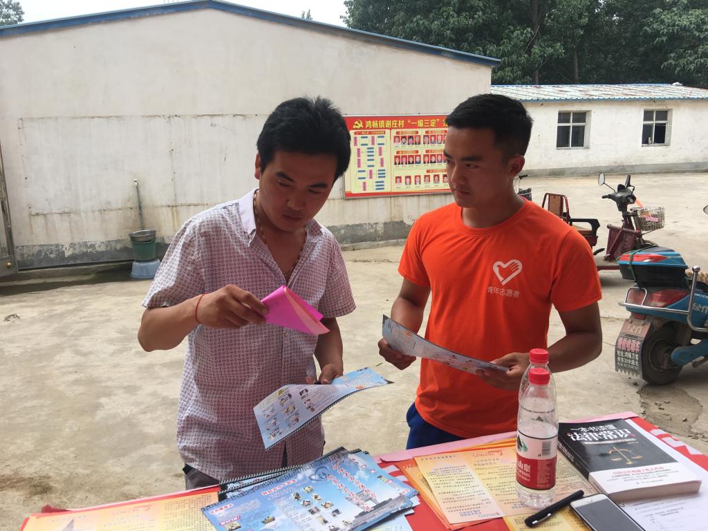 为进一步让法律援助深入农村、贴近百姓,加大对农村困难群众法律援助宣传力度,7月5日,许昌学院法政学院情暖莲城法律援助志愿服务实践队于禹州市鸿畅镇谢庄村开展了法律援助和法律宣传活动,向谢庄村村民宣讲法律知识,普及法律常识,宣扬法治理念。