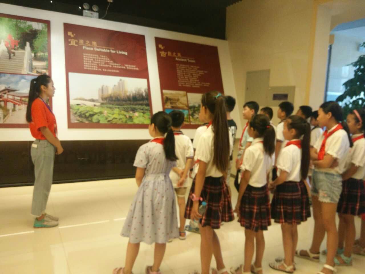 今天我们的志愿者们面对的是一个特别的参观群体——来自健康路小学的孩子们,他们天真烂漫、好奇心强,同时也是活泼好动、爱吵闹,所以对于他们的安全和纪律问题更应加以高度重视,这对于志愿者们的工作开展而言无疑是个挑战。在法政学院柴丽老师的带领下孩子们和陪同的家长们于展览馆门口集合,并拍照留念,用镜头留下这些快乐的回忆。接着,在志愿者们的带领下,孩子和家长们进入馆内开始参观。在讲解的过程中,孩子们对新事物都有一颗好奇的心,提出了自己的各种疑问,志愿者们都耐心地给出了正确的解答。同时,志愿者们为了进一步和孩子们拉近距离,主动和他们进行交谈并以讲解内容为主题,向他们提出问题,从而增加和他们的互动。在其乐融融的氛围中,志愿者们和孩子们拉近了彼此之间的距离,孩子们了解到了所居之地的点滴改变,同时志愿者们也收获了满满的温情与感动。