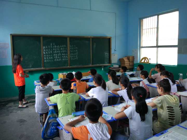 经过5天的趣味游戏的开展,实践队员们与同学们建立起了良好的关系。本着游戏与教育并重的原则,7月7日,法政学院暑期教育帮扶社会实践队的队员们顺利开展“诗歌朗诵”和“普通话学习” 教育活动。