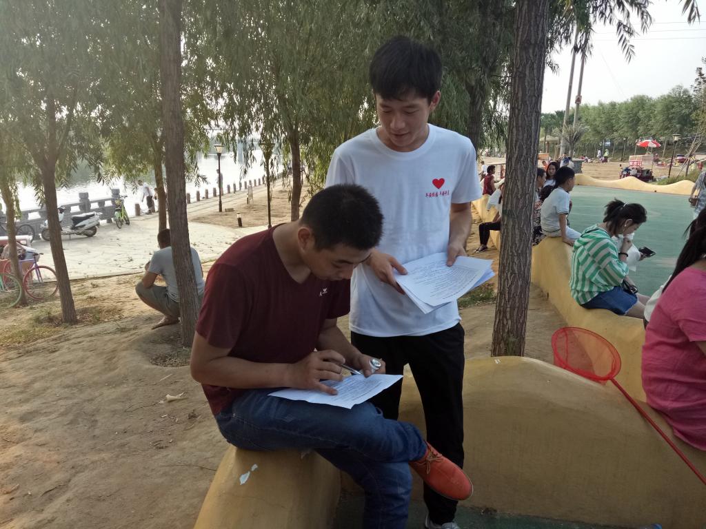 为了贯彻“平安,平安许昌”的社会实践主题,社会实践队员们在学校,公园等各个场所开展调研活动,通过分发调查问卷的形式向广大人民群众对于消防知识的认知程度进行了解。