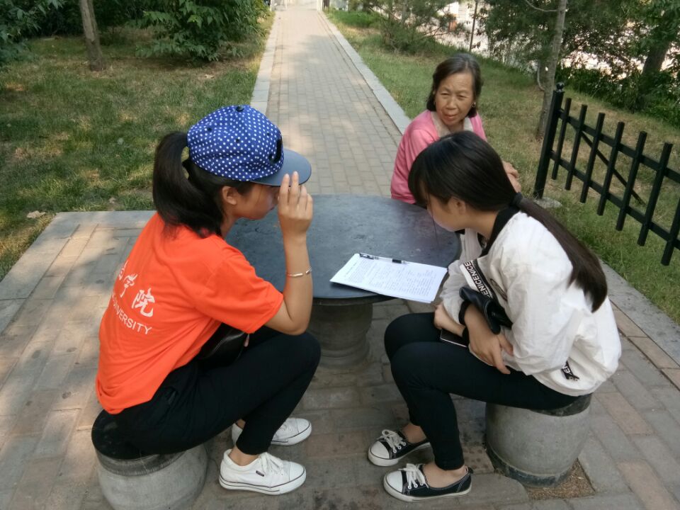 上午,实践队一行来到了西湖公园,并分组行动、分区对公园内的人群进行以实地访谈和问卷调查为主的调研。实践队员们对受访群众以访谈形式针对城市社区居委会的扶贫了解基本情况,再以访谈和问卷调查相接合的形式全面了解城市中的扶贫情况,并与农村扶贫做对比,就生病就医、残疾及子女上学等是不变的贫困原因,但相对于农村村民而言,城市居民拥有更多的扶贫帮助,他们所期望的与农村村民所基本要求的改善基础设施和增加扶贫金额和门槛有所不同,城市居民更多希望的是获得相应脱贫的手艺技术及改变思想观念,以便于长久脱贫。