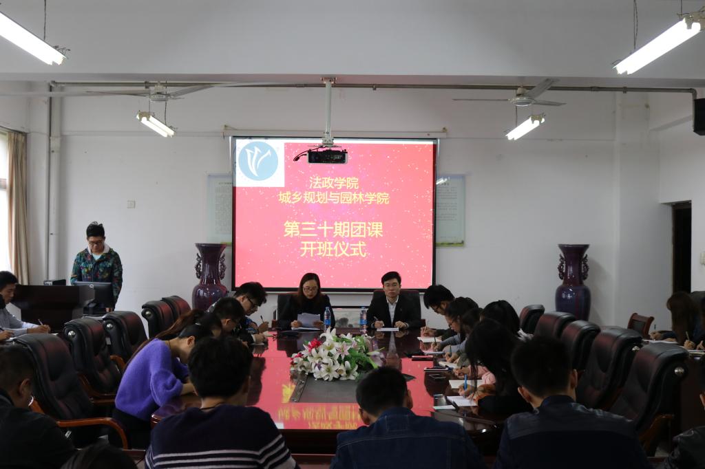 为进一步加强团员的政治思想观念,充分发挥团组织教育青年的功能,进一步加大对团员青年、 团学干部的培养教育力度,增强团员对团组织的深刻认识。2017年10月14日上午9时,我院和城乡规划与园林学院在城规楼二楼会议室联合举办“第三十期团课开班仪式”。我院团总支负责人孙晨赫与城乡规划与园林学院团总支书记赵学琴以及全体团校成员参加了此次开班仪式。