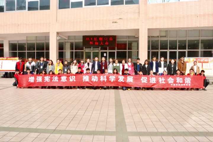 为深入开展法制宣传教育,弘扬社会主义法治精神,普及宪法法律知识,进一步提高我校大学生的法律素养与法律意识。12月4日,于国家宪法日之际,由许昌学院法政学院主办,法政学院法学会承办的“携手你我他,助威12.4”主题法制宣传誓师大会暨启动仪式在新餐厅前广场隆重举行。许昌学院党委宣传部副部长王彦,法政学院院长崔秀花、党总支副书记黄春建、团总支负责人兼法学会指导老师孙晨赫等出席本次誓师大会。誓师大会由法学会会长栾赛花主持。