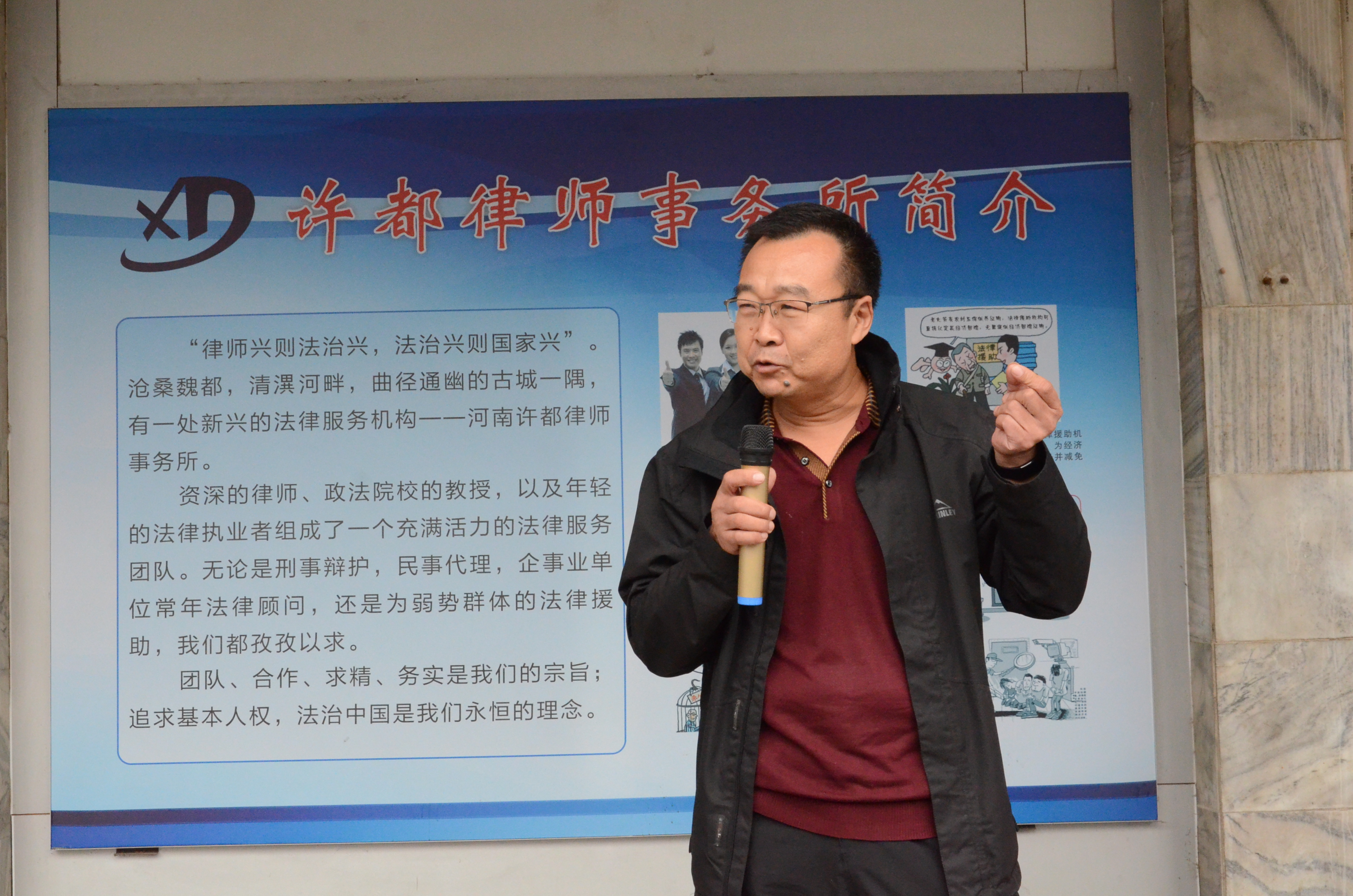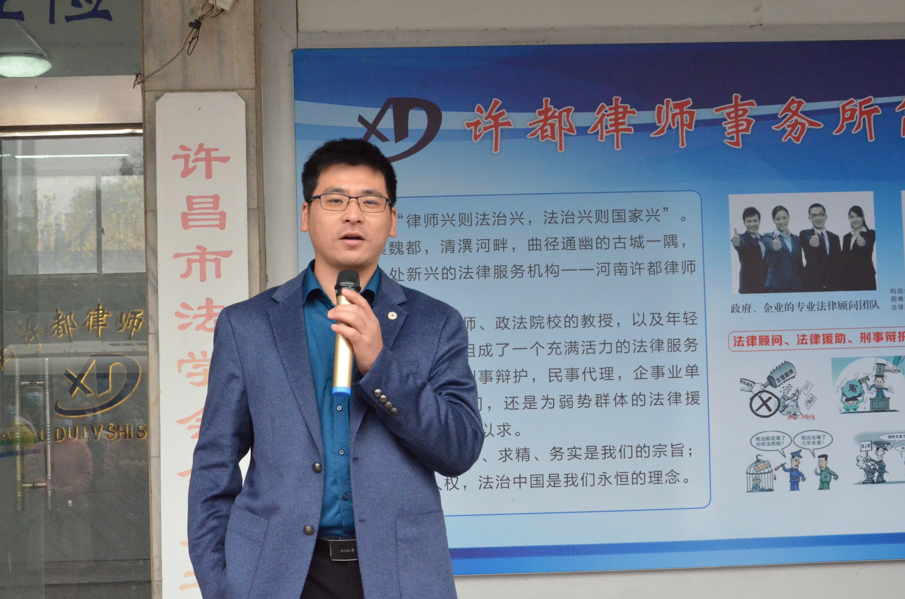 参观完毕后,许都律所党支部书记张军超、主任康东升和我校毕业生刘寅律师给大家进行了经验分享,他们分别从律师事务所的工作机制、律师工作现状和前景,并结合亲身经历讲述了做律师的优点和困难之处,以此鼓励同学们学好专业知识,为将来坚持法律操守、做好法律实务工作、做一名优秀的法律人而努力奋进。最后,张书记还代表河南许都律师事务所向每个班赠送了一套律师徽标作为留念,借此表示欢迎、寄以激励!