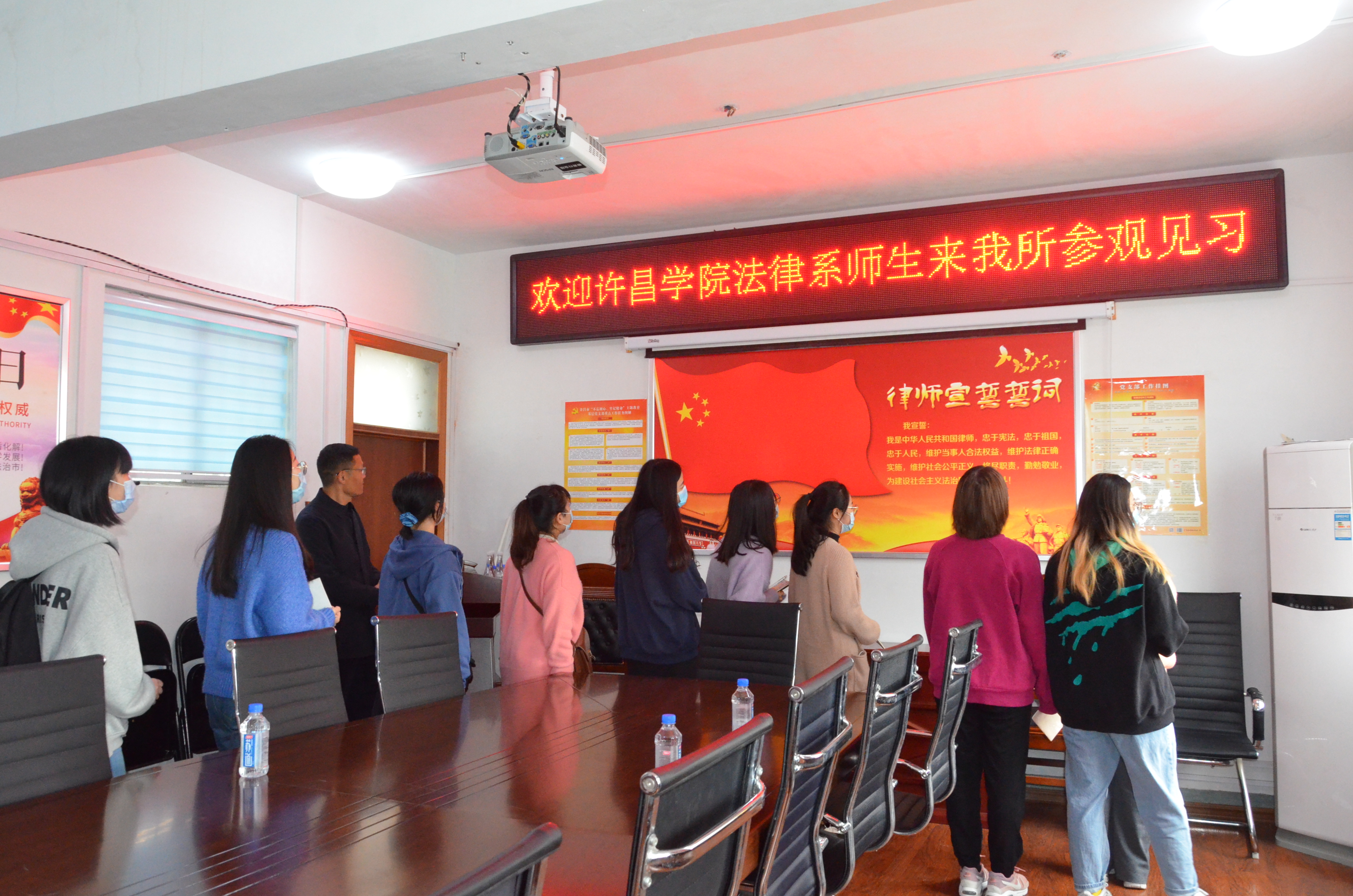 为提升我院学生的专业实践技能,充分落实法学专业培养方案的要求,11月16日上午,我院18级全体学生在实践教研室主任孙敬良、刑事与经济法教研室主任冯振强以及18级辅导员杨晓丽的带领下前往河南许都律师事务所开展专业见习,由此开启为期一周的专业见习教学活动。
