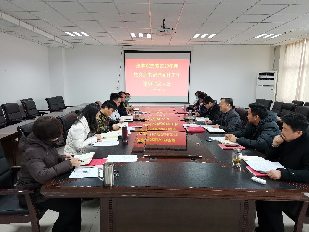 2021年1月10日,法学院党委在文综楼1225召开支部书记抓党建工作述职评议考核会议。党委委员、支部书记、党员和群众代表共13人参加,党委书记孟凡根主持了本次会议。