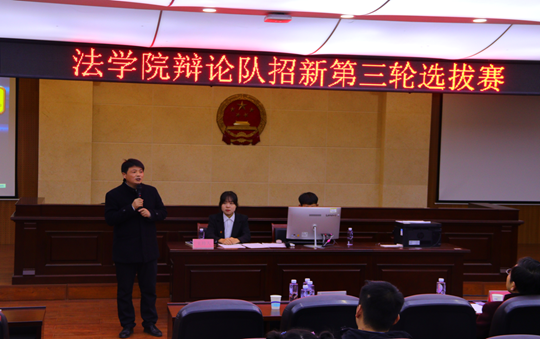 为弘扬大学生思辨精神,倡导思辨文化,提高学生的辩论、团队协作能力。我院于11月7日下午在C合二模拟法庭举办了法学院新生辩论赛。院长周耀宏教授,副院长王忠灿博士,院辩论队指导教师孙敬良博士及2021级新生辩手出席本次会议。