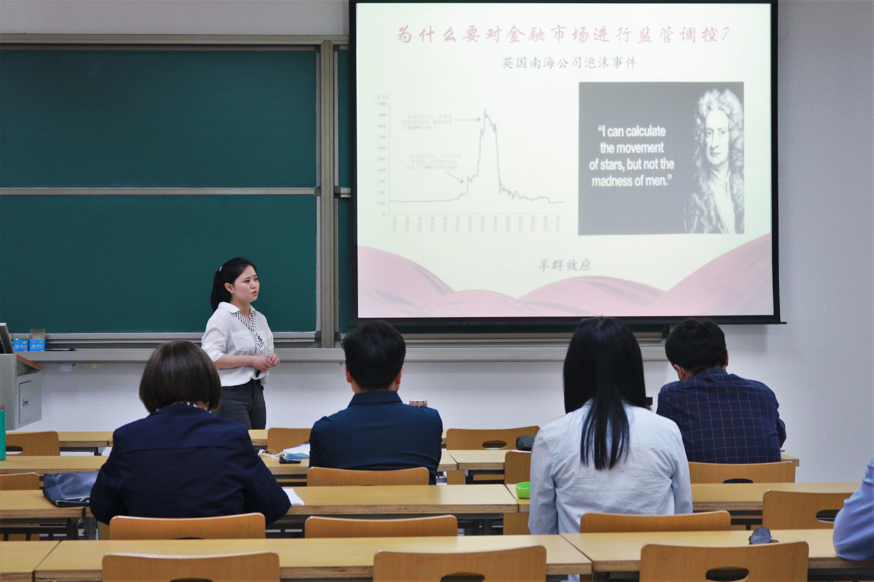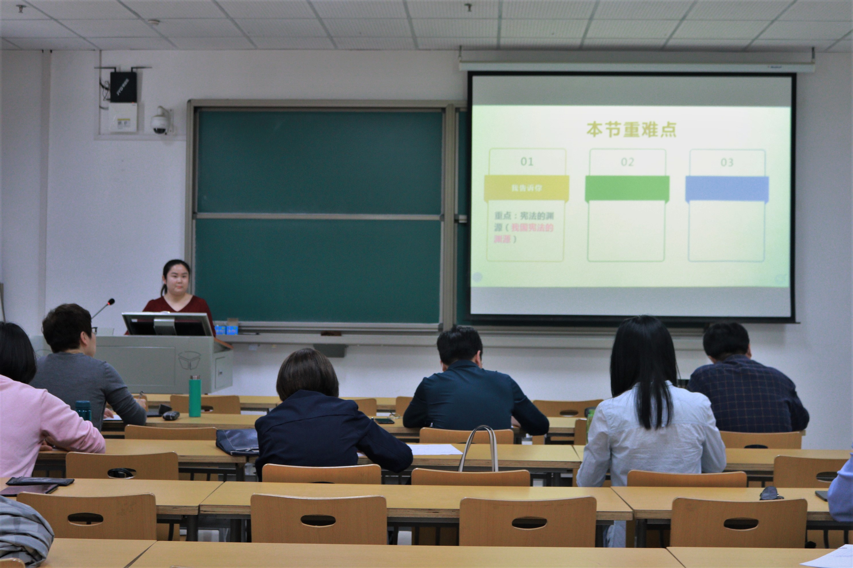 闻锋、李静雅、李艳玲、魏笑四位老师通过前期精心准备,依次围绕著作权的客体“作品”、“宪法的分类与渊源”“金融调控法的必要性”、“法律关系概念”分别进行了20分钟的授课展示。