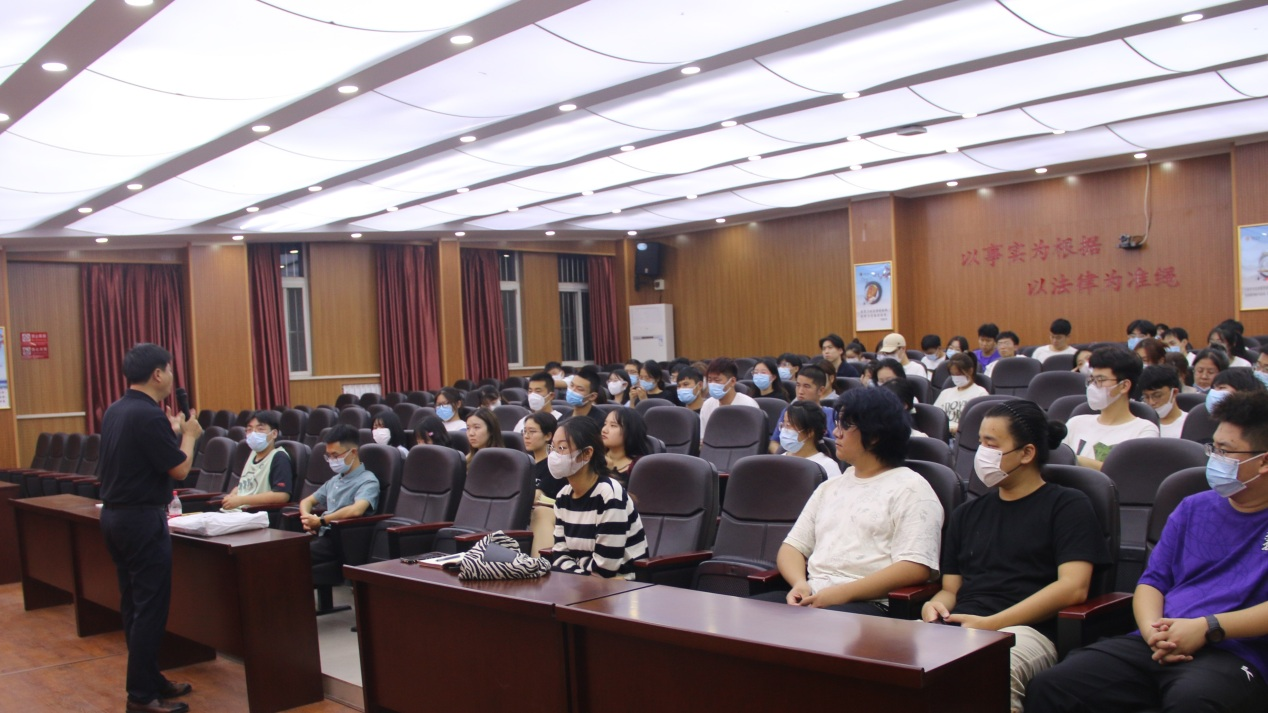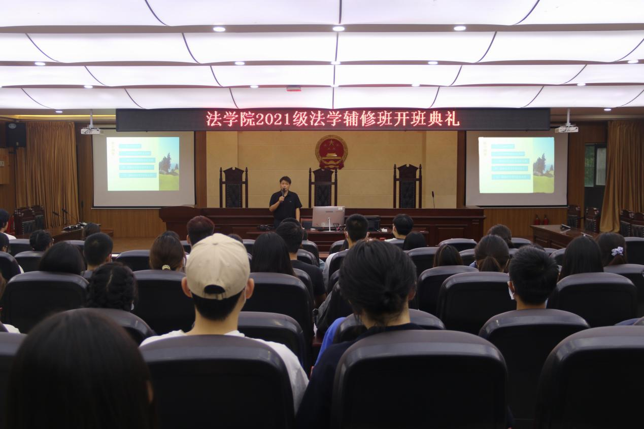 2022年9月29日晚19点,我院2021级法学辅修班开班典礼于C合二模拟法庭召开。本次开班典礼由我院徒芳草老师主持,副院长王忠灿担任主讲,来自全校13个院系的76位辅修法学专业的同学到场参加。