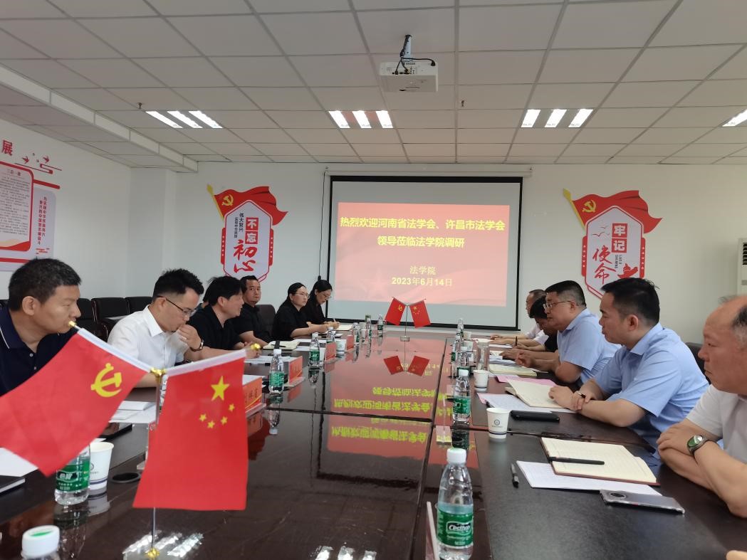 6月14日,河南省法学会党组成员、秘书长王子勇到我院调研法学研究工作,许昌市委政法委常务副书记李卫东、许昌市委政法委副书记邵学东、许昌市法学会秘书长周广兵陪同调研。王子勇一行和我院教师在我院大会议室举行座谈会,副院长王忠灿主持会议,教研室主任、教师代表参加座谈会。