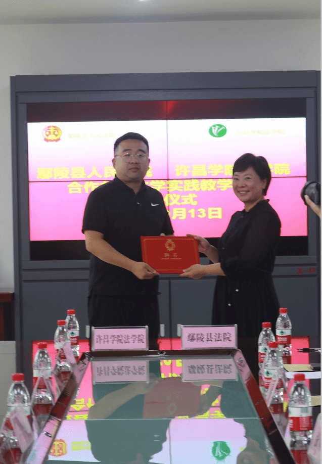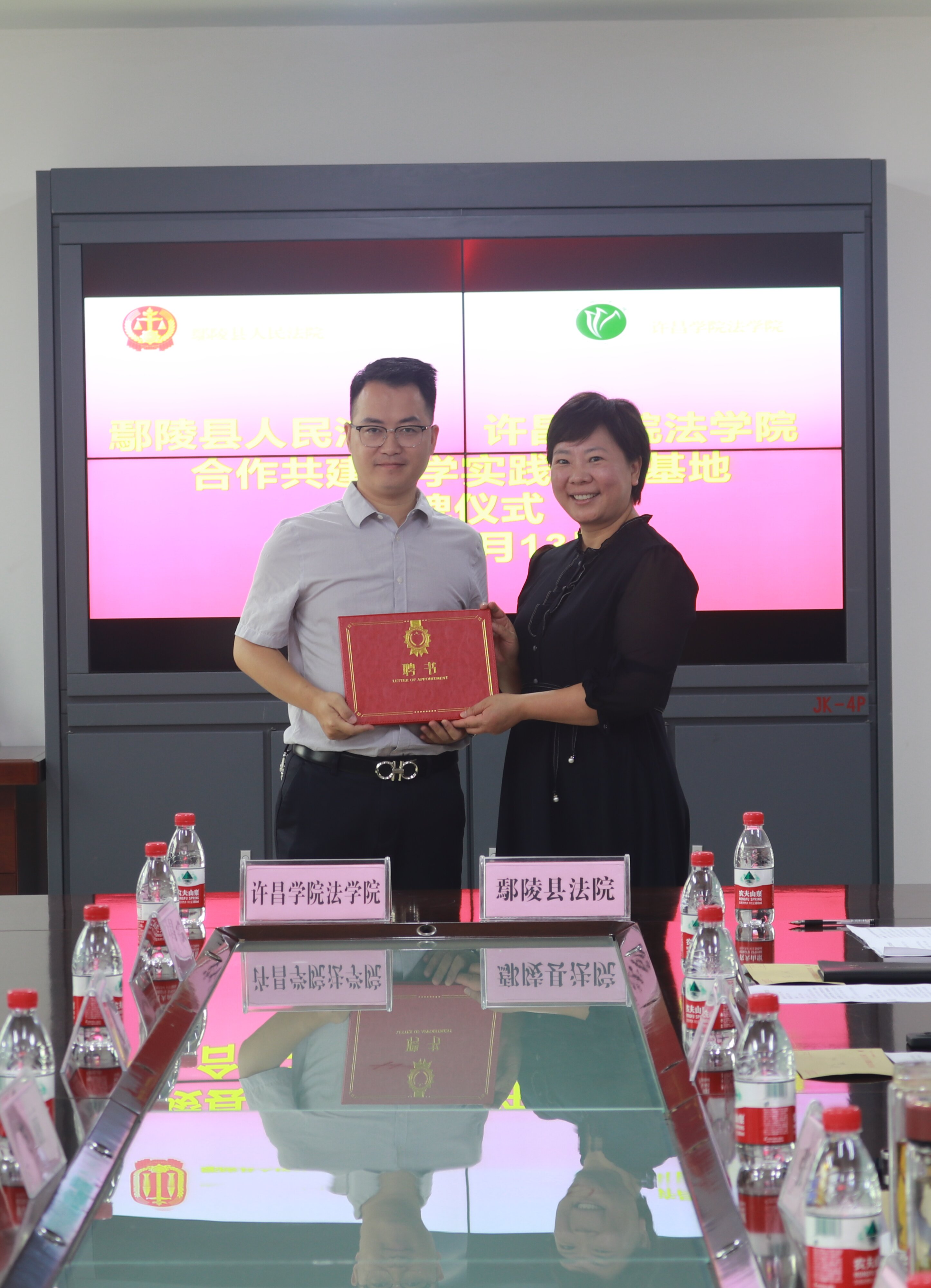 会上,副院长王忠灿与由鄢陵县法院党组书记、院长蔡文慧共同为“许昌学院法学院实践教学基地”揭牌。副院长冯振强与鄢陵县法院副院长张海明签订合作备忘录。市中级人民法院研究室主任陈磊和鄢陵县法院党组书记、院长蔡文慧向我院冯振强、孙敬良、侯凯、李杰、柴丽、魏庆爽、闻锋七位教师发放聘书。
