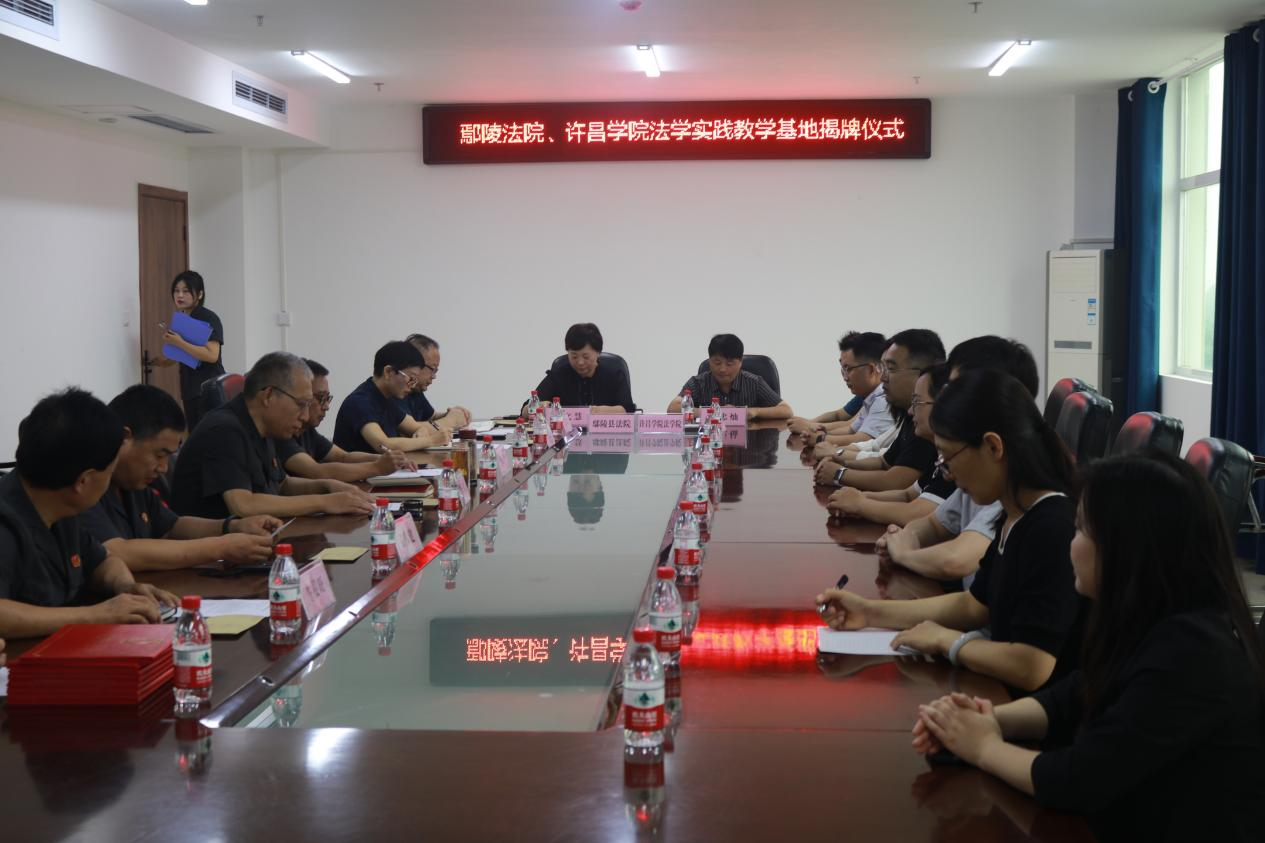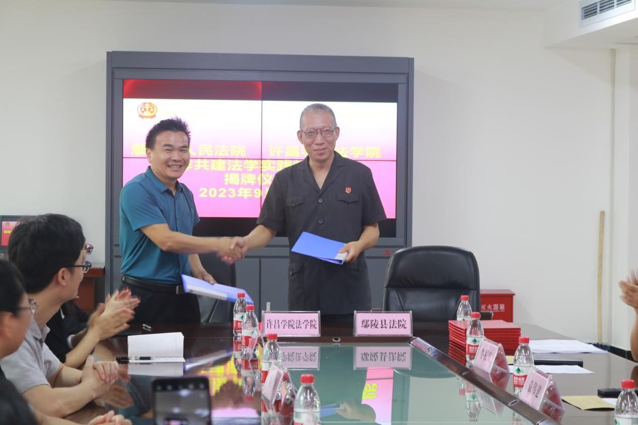 9月13日,我院与鄢陵县法院举行共建实践教学基地揭牌仪式。许昌市中级人民法院研究室主任陈磊、鄢陵县法院党组书记、鄢陵法院长蔡文慧及领导班子、调研人才库成员代表出席仪式,我院副院长王忠灿、副院长冯振强及受聘教师代表出席揭牌仪式。揭牌仪式由鄢陵县人民法院党组成员、副院长张海明主持。