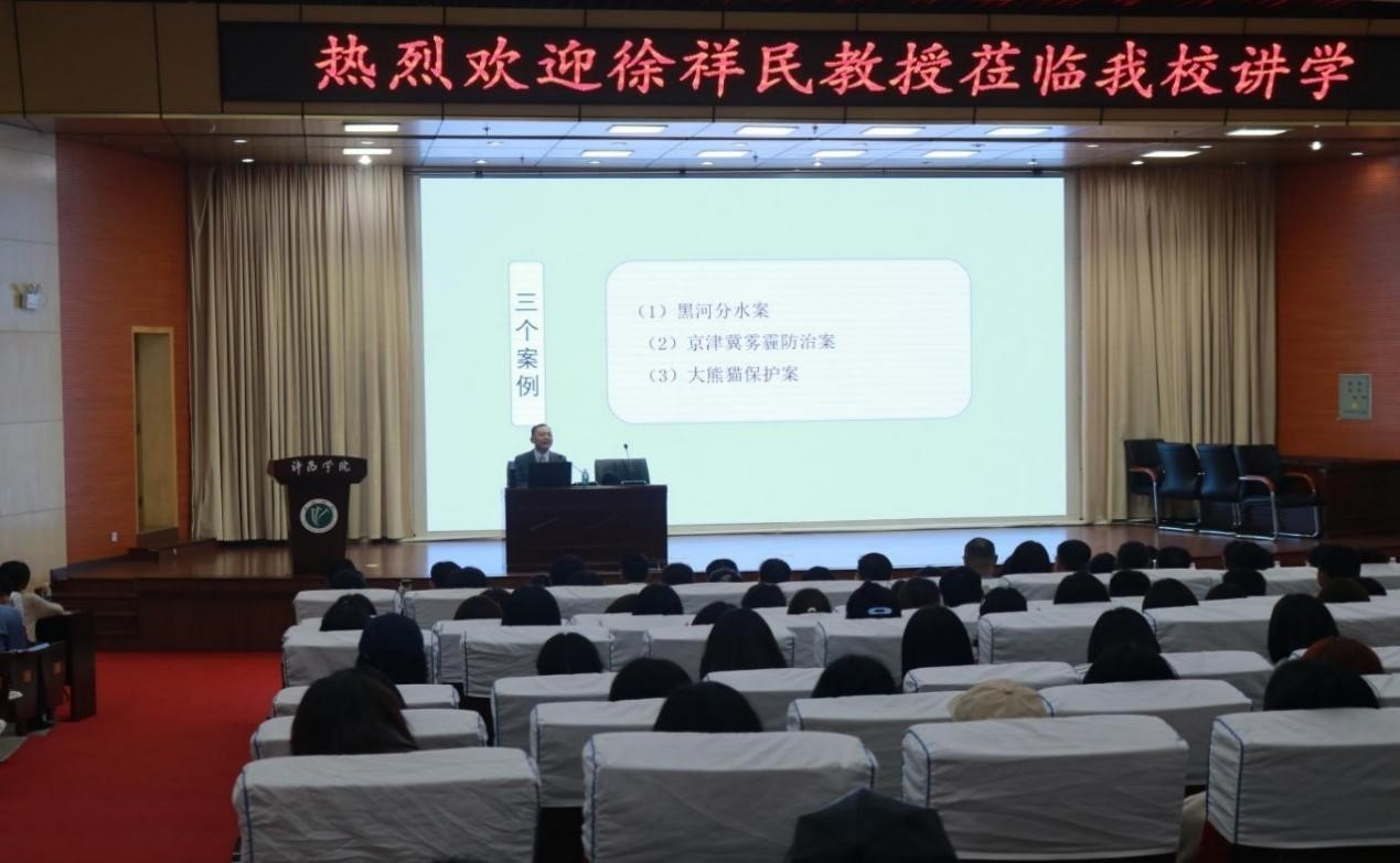 见习伊始,我院师生以及许昌市法检系统部分实务工作者一同参与了浙江工商大学特聘教授徐祥民在许昌学院学术报告厅开展的学术讲座。讲座以“从环保案例看环保法理”为题, 聚焦我国目前环境保护现状,依次从“黑河分水案”、“京津冀雾霾防治案”、“大熊猫保护案”三个案例切入,分析了自然地理因素及人类活动对自然环境造成的影响,探讨了我国在不同时期制定的政策法规,阐述了其中蕴含的环保法理,拓宽了同学们的学术视野。