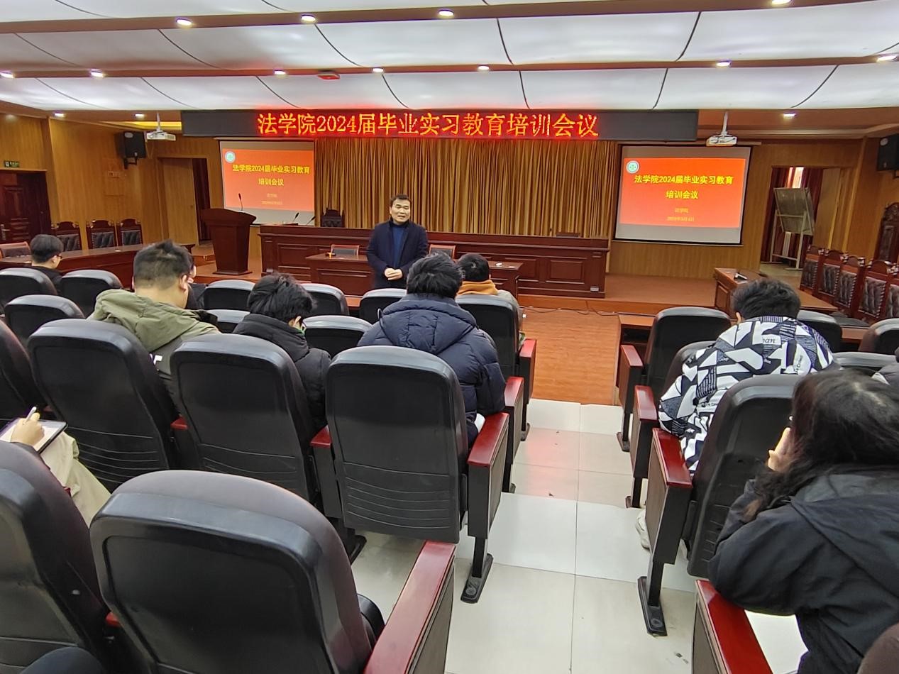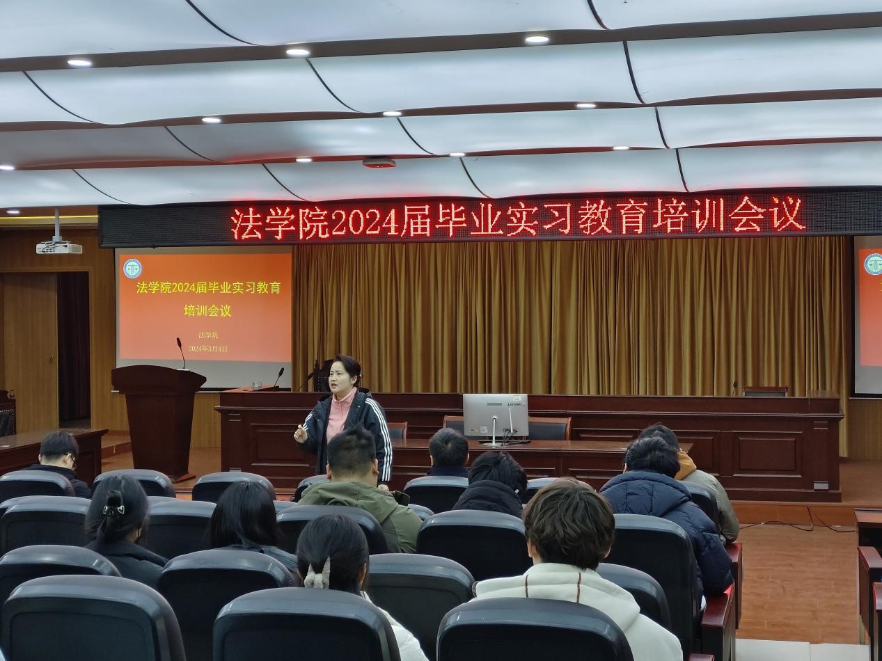3月4日下午,我院2024届毕业生实习工作部署会在东启智楼二楼模拟法庭召开。院党委副书记刘毅飞、副院长冯振强、2020级辅导员李静雅老师、各实习单位带队老师及2024届法学专业全体毕业生参加本次会议。