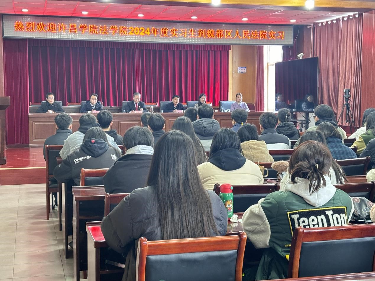 据悉,为不断提高实践教学质量和效果,切实做到通过强化实践教学推动法学专业知识教育。我院今年参与集中实习的学生将被分配到许昌市人大法工委、许昌市人民检察院、许昌市中级人民法院、魏都区人民法院、鄢陵县人民法院、建安区人民检察院、建安区人民法院尚集法庭等国家机关,河南天苑、河南许都、河南君志合、河南世纪风、河南君共彰、河南新莲等律师事务所以及中国农业发展银行(建安区支行)等14个单位开展实习工作。