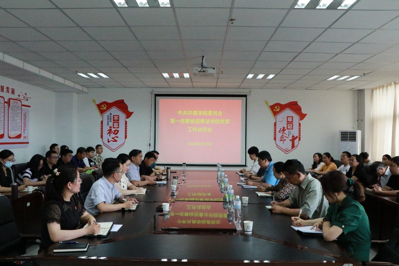 2024年5月29日上午,校党委第一巡察组巡察法学院党委工作动员会在文科综合楼1225会议室召开。校党委第一巡察组组长李晓鹏,副组长申璐莹、王璐,联络员周婷婷,成员宁智沛、朱晓婷出席会议。法学院领导班子全体成员、科级干部、党支部书记、教师和学生代表参加会议。会议由法学院党委书记孟凡根主持。