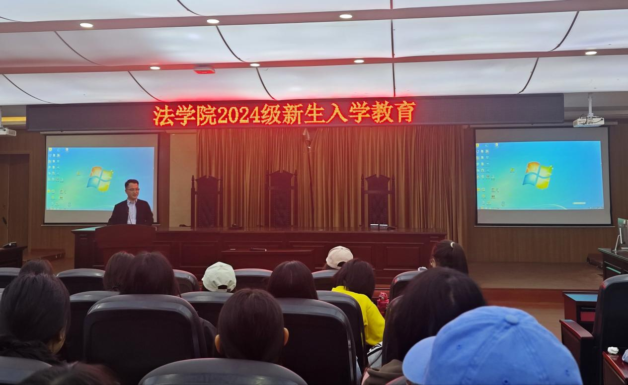 9月12日,院长王忠灿在C合2模拟法庭开展《法学专业、法律职业与法科学生的学业》主题讲座。他围绕“法学学科的含义”、“法学学习方法”、“法学使命”三大方面,从法学专业相关问题出发,结合理论知识深入分析,引导新生加深对法学专业的整体了解以及明确学习要求,同时教导全体新生将人文素养和道德素养排在首位,做一名德法兼修的法律人。