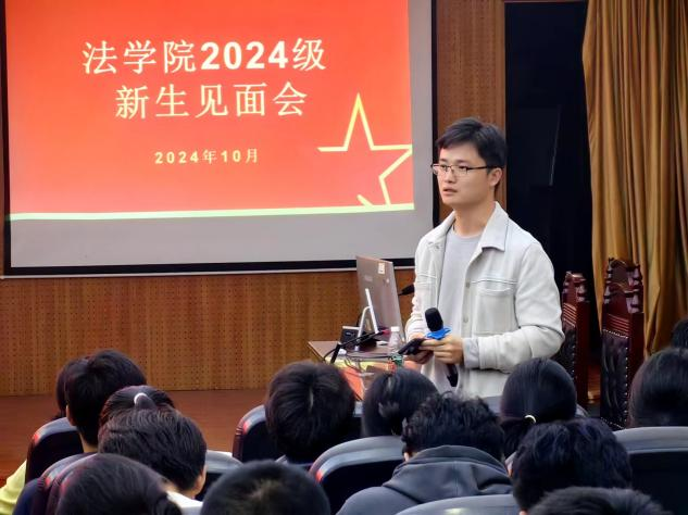 2024级法学2班付沛冉同学以“梦想启航青春正当时”为题作为新生代表发言。她呼吁同学们牢记“崇德砺志、博学敬业”的校训和“崇德尚法、博学笃行”的院训,将个人理想与国家命运、民族复兴紧密联系在一起,以实际行动奋力书写为中国式现代化挺膺担当的青春篇章。
