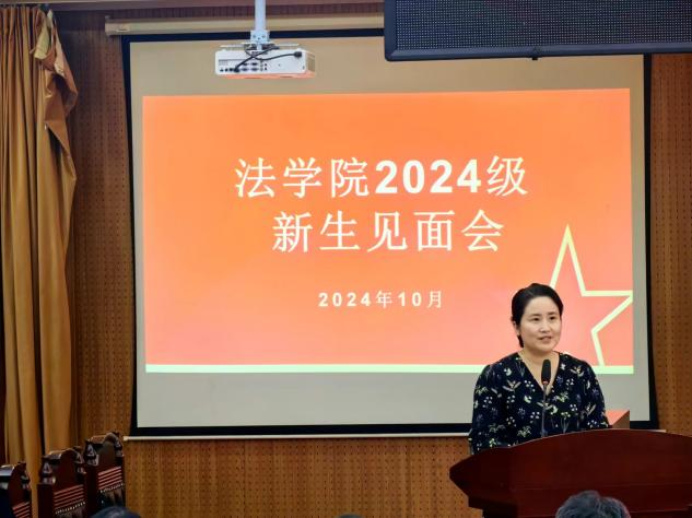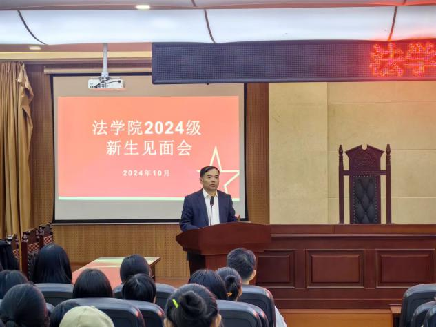 为帮助新生尽快适应大学生活,开启法学学习的崭新篇章,我院于2024年10月11日在模拟法庭开展了2024级新生见面会。院党委书记孟凡根、院长王忠灿、党委副书记刘毅飞、副院长冯振强、副院长孙敬良出席会议,学院教研室主任、班导师、辅导员以及2024级全体新生200余人参加见面会。会议由刘毅飞主持。