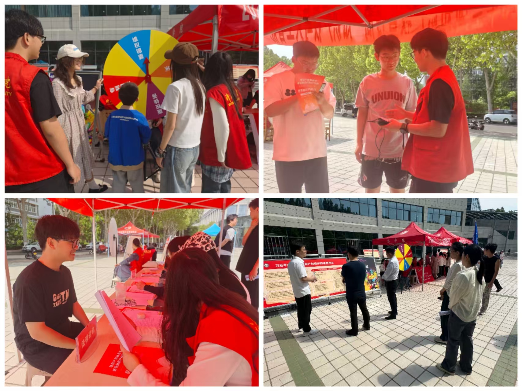 活动现场通过设置宣传展板、发放普法手册,并创新开展互动问答及普法转盘游戏等形式,立体化呈现知识产权保护的核心价值。闻锋老师以“人工智能时代的知识产权守护”为主线,从世界知识产权日的设立背景切入,系统阐释知识产权对AI技术发展的双向赋能作用,并结合国家最新政策解读保护工作的战略意义。学生志愿者聚焦实务热点,围绕“大学生专利申报流程”“校园常见知识产权侵权行为”等话题与师生展开互动答疑。王忠灿在总结中强调:“知识产权保护是法治中国建设的核心命题,希望同学们以专业素养为根基,争做创新成果的捍卫者与法治精神的传播者。”