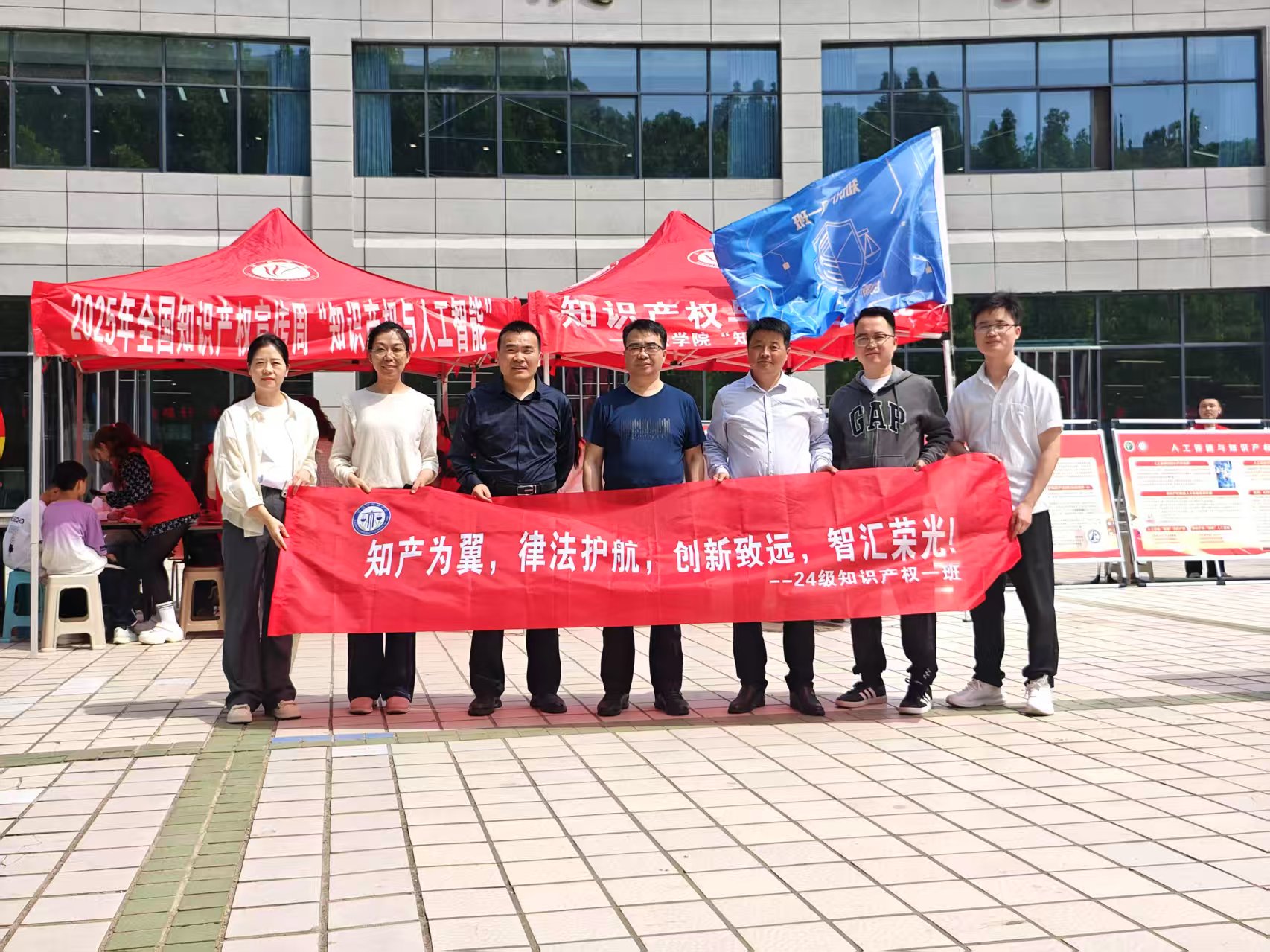 为迎接第25个“世界知识产权日”和第17个“全国知识产权宣传周”,增强师生对人工智能时代知识产权保护的认知。2025年4月26日,我院围绕“知识产权与人工智能”主题,在学校满庭芳餐厅前广场举办知识产权宣传周活动。活动特邀校地合作办公室主任郭超锋莅临指导,法学院院长王忠灿、副院长冯振强、孙敬良携知识产权教研室全体教师及2024级知识产权专业学生共同参与。