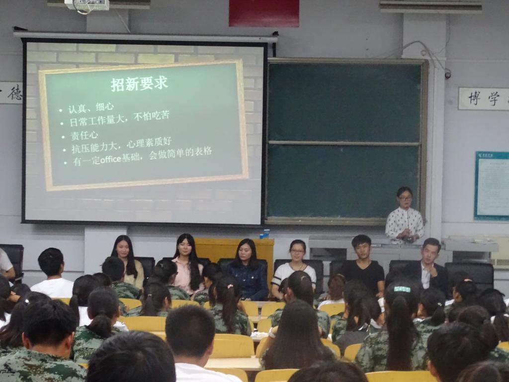 介绍会上,我院宣传部、组织部、学习部等十六个部门代表精心准备,通式幻灯片认真介绍了日常的工作方方面面,生动的图片附上简明的文字,风趣的话语配以亲切的语调,深深的吸引了同学们。大家全身贯注,对学生干部的日常工作进行了深入了解。介绍完毕后,同学们有序发言,表达自己的感想和疑惑,各部门代表立足实际细致的为大家做出了解答,并和同学们交流了学习、工作经验,欢笑声和掌声萦绕耳际,介绍会在轻松的氛围中取得了圆满成功。最后,由孙晨赫老师总结发言:“看到同学们对学生工作的热情,我感到很欣慰。在大学生活中,同学们不但需要努力提高自身的核心竞争力,更需要有宽阔的胸襟,培养自己的协作精神与奉献意识。一个人走,可以走得快,一群人走,可以走得远。希望大家和这个集体不断向前”。