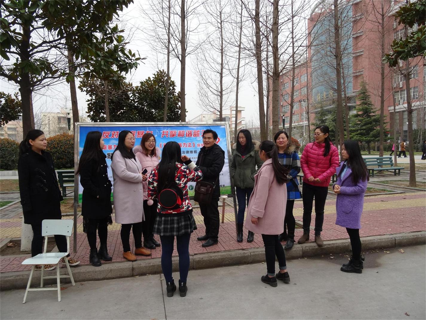 3月8日上午,在分工会主席唐战立教授的主持下,“美谈法政”拉开了序幕,法政学院全体女教师围绕和谐家庭关系、日常教学科研、学院改革建设和学校转型发展等问题进行了深入的讨论和交流。随后,通过摆放展板、发放材料、编发微信等形式,在弘毅广场开展了以宣传《女职工劳动保护特别规定》和《反家庭暴力法》为主要内容的专题教育活动“美传法政”。