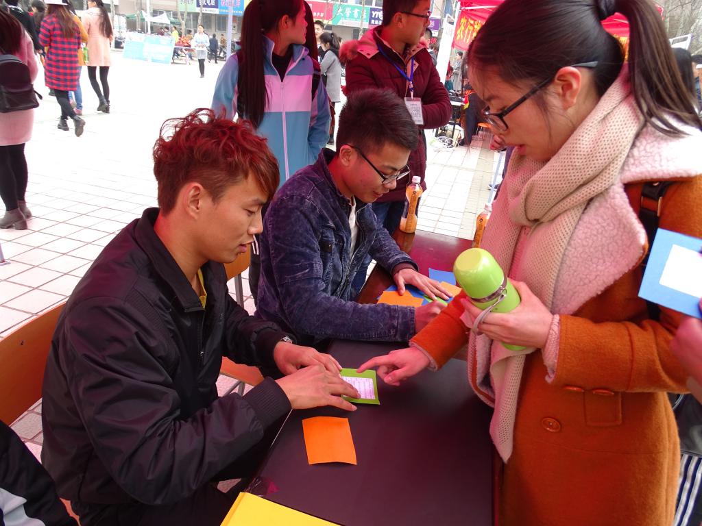 活动当日,志愿者们一早就在新餐厅前摆放宣传标语、宣传版面,设立《消费者权益保护法》宣传处,为来往学生普及消法知识,答疑解惑,同时围绕《消费者权益保护法》举行“学法、背法、答法”小游戏,为获胜者颁发纪念品。在精美礼品的吸引下,众多学生纷纷驻足观看,参与其中。同学们积极的学习法律知识,热情地投入到“维权”游戏中,有序地抽取“消法”卡片,根据卡片内容要求的差别,他们有的认真背诵着《消费者权益保护法》的有关条文,有的兴致勃勃的向志愿者咨询法律问题,有的和身旁的同学分享收获。活动在一片融洽欢愉的氛围中如火如荼的进行,取得圆满成功。