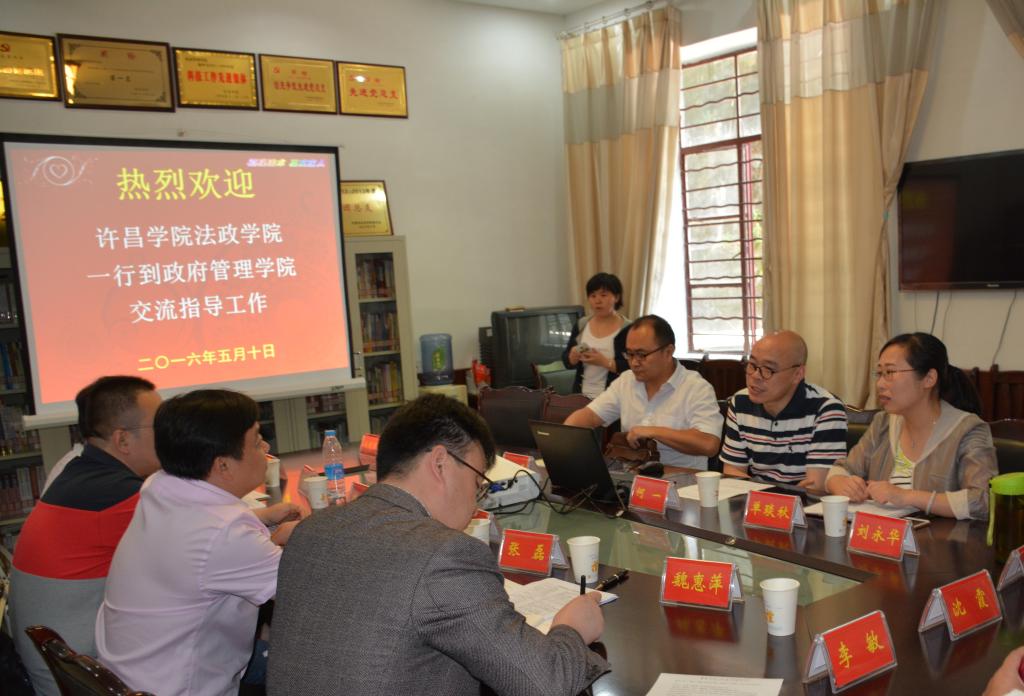 在乐山师范学院,柯彪副院长一行到政法学院,与陈天柱院长和姜敬红副院长就法学和行政管理专业的课程调整优化、培养方案修订、卓越人才工程建设、双师型队伍建设和高层次项目申报等问题进行了交流和探讨,并实地查看了公共管理实验中心和大学生模拟法庭。