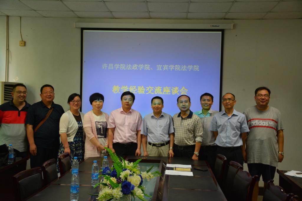 在宜宾学院,柯彪副院长率队分赴法学院和政府管理学院进行了考察和交流,法学院蒲东升书记、邓中文院长和张波副书记及法学专业部分教师参与了座谈,双方就法学专业的课程优化、实践教学、学生培养和服务社会等问题交换了意见;政府管理学院何一院长、单琰秋副院长以及相关专业教师参与了座谈交流,双方就行政管理专业的毕业实习、专业见习、课程设置、师资优化等问题进行了深入探讨,并就新专业申报、教学团队建设和科研平台构筑等问题开展了广泛交流。