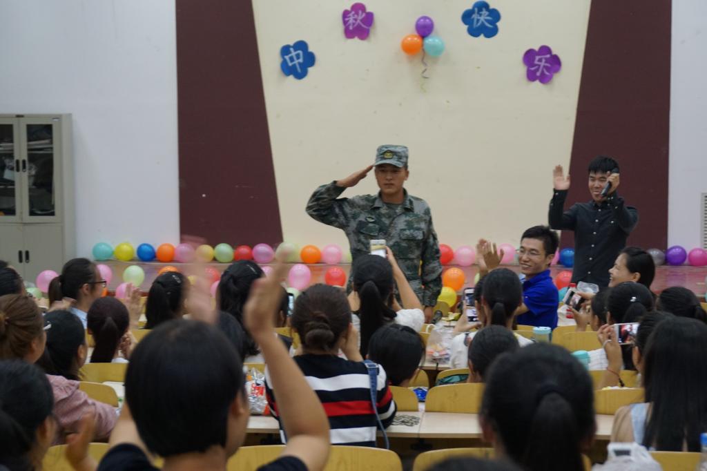 活动伊始,孙晨赫老师代表法政学院为大家送上诚挚的中秋祝福,感谢教官对新生的指导,并希望大家能够在法政大家庭中感受集体的温暖。晚会在热情奔放的开场舞中正式拉开帷幕,首先一曲《红色高跟鞋》踏着欢快热情的节奏让人心潮澎湃,接下来新生代表为晚会献上一首寄托他们思乡之情的感人歌曲《明月几时有》,晚会在主持人的带动下进行“击鼓传花”游戏,使全场氛围更为活跃。随后在《走进许院》的青春诵歌中,带着热情与憧憬,走进法政,认识了那些可爱的《调皮师生》。整场茶话会精彩不断,高潮迭起,展现了法政学院新生的青春风采与爱校情怀,不仅为大家带来了丰富的视听盛宴,更让新生们感受到了大学生活的丰富多彩。