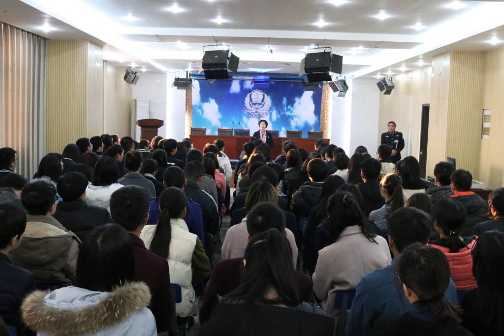 同时,我院同学在教学楼接受新郑市监狱领导带来的以警示教育与职业规划为主题的讲座,在向同学们介绍了新郑的基本情况以及新郑监狱的历史发展轨迹后,一个服刑人员为大家做了“贪欲铸就十年悔恨”的演讲。最后,新郑监狱教育科李科长针对人生规划为同学们做出指导,教导同学们一定要树立健康正确的三观,时刻坚守自己的道德底线,坚决不做危害国家社会的蛀虫。活动最后,崔秀花院长代表我院师生对监狱领导的讲话表示感谢并作总结发言,希望同学们今后一心一意地走好人生每一步。