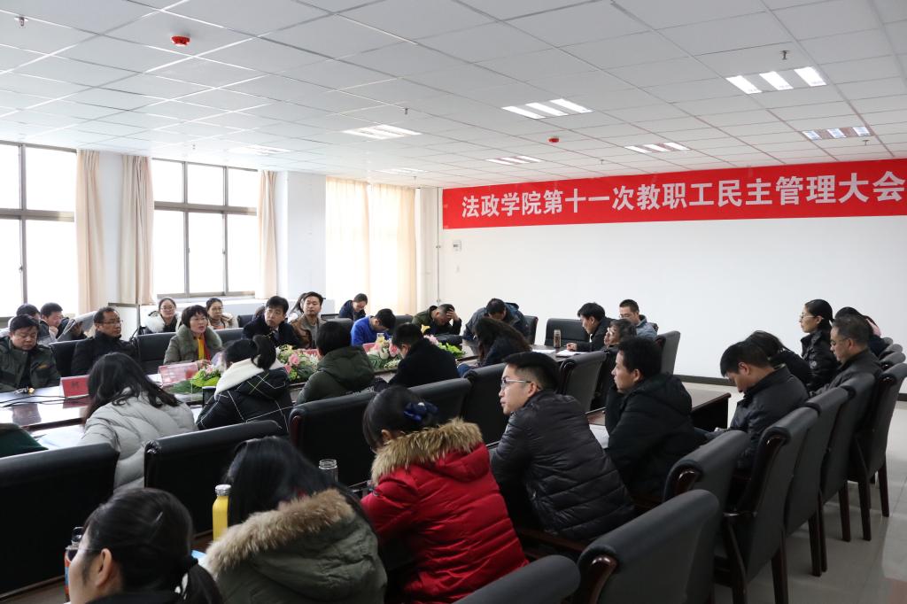 2016年12月30日下午,法政学院在文科综合楼1225会议室召开第十一次教职工民主管理大会,院领导班子及全体教职工参加了本次大会。会议由法政学院党总支书记、分工会主席唐战立主持。