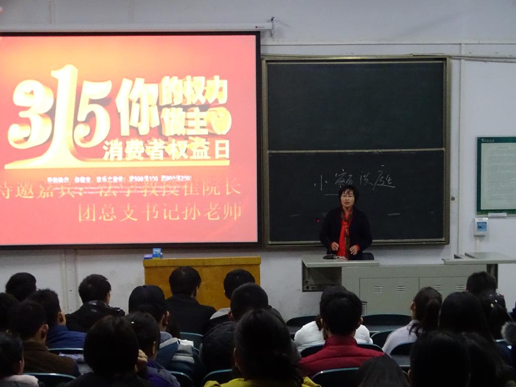 3月19日晚7时,由许昌学院权益部主办,法政学院勤权部、法学会、雷锋连承办的“3.15我们一起行动”消费者权益保护知识讲座于A合十七顺利举办。法政学院院长崔秀花、团总支负责人孙晨赫出席了此次活动,我校广大法律爱好者及我院16级全体学生认真聆听了此次讲座。