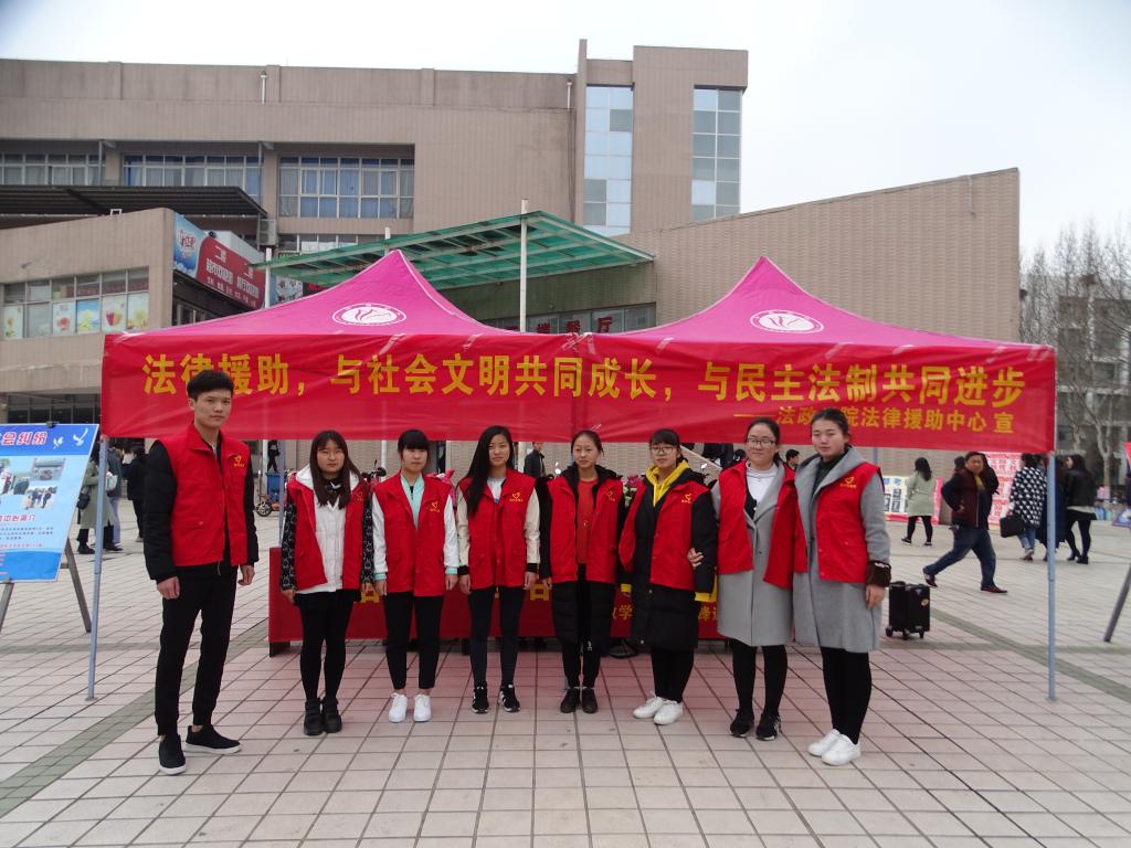 为增强大学生的法律意识,切实维护大学生的合法权益,3月20日,由法学会、法政学院编外雷锋连、法律援助中心主办的 “爱相随,法相伴,风雨同行” 雷锋月法援宣传主题活动于新老餐厅前广场顺利开展。法政学院团总支负责人孙晨赫对活动进行专业指导,法学会工作人员、雷锋连志愿者团队、及法律援助中心工作人员到场参与活动宣传。