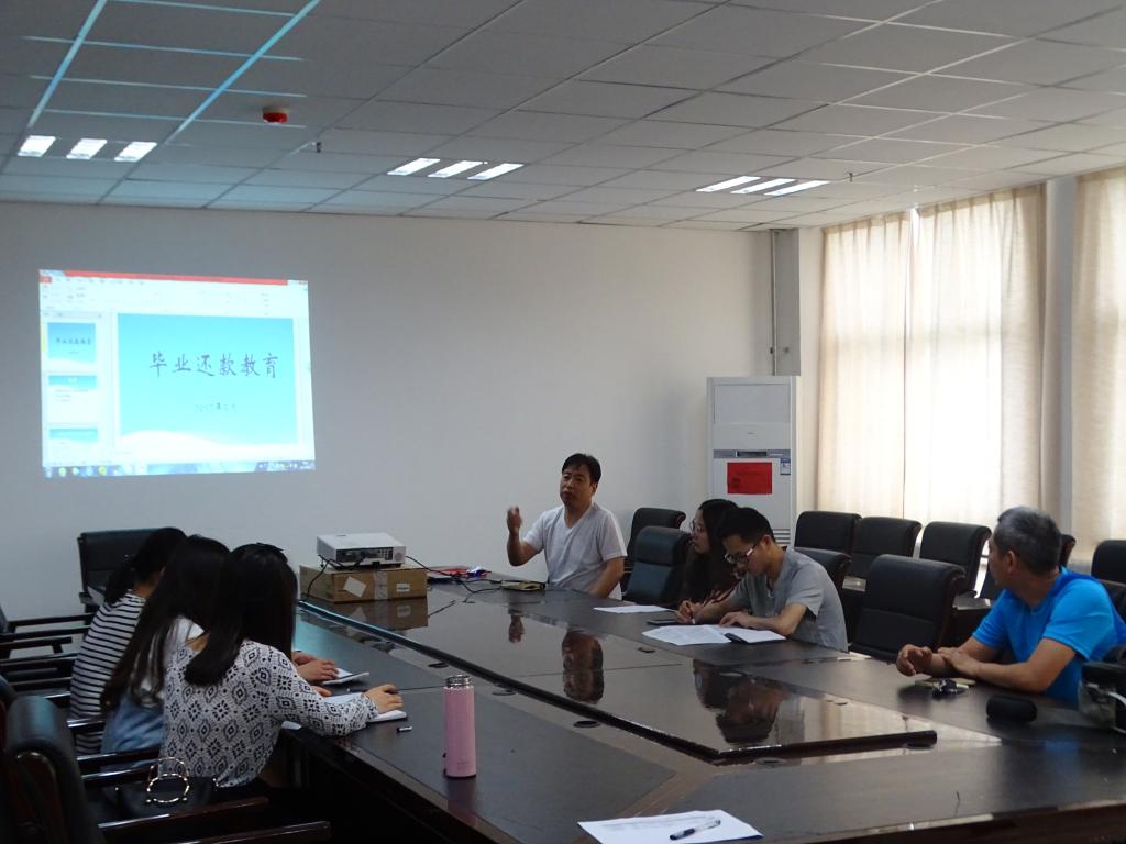 会议伊始,唐书记向2017届贷款毕业生介绍了关于还款的一些重要细节。首先,他就提前还款等手续的办理进行了详细的说明,并为贷款学生在还款方面提出了很多可行的建设性方案,以确保每一名借款学生的问题能够得到妥善的解决。他从学生的切身利益出发,强调了对于毕业信息进行确认的必要性和重要性,学生务必要通过在线系统补充本人的基本信息并提交毕业确认申请。与此同时,勤权部副部长孙永恩还认真细致地向贷款学生说明了还款的详细步骤以及在还款过程中可能出现的一系列问题,并且耐心地向同学们进行了详细的模拟演示。最后,许建峰老师对学生们进行了违约责任教育,强调诚信立本,希望每位同学能够更好的投身到工作与学习中去。
