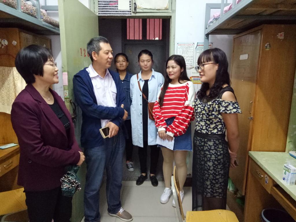 年年岁岁花相似,岁岁年年人不同。阵雨过后,暑气消退,迎来了一阵凉爽,法政学院也迎来了17级新生。在9月10日的教师节,我院党总支书记唐战立、院长崔秀花、党总支副书记黄春建、17级辅导员许建峰,深入走访新生宿舍,一心为学生考虑,令学子们倍感温情。