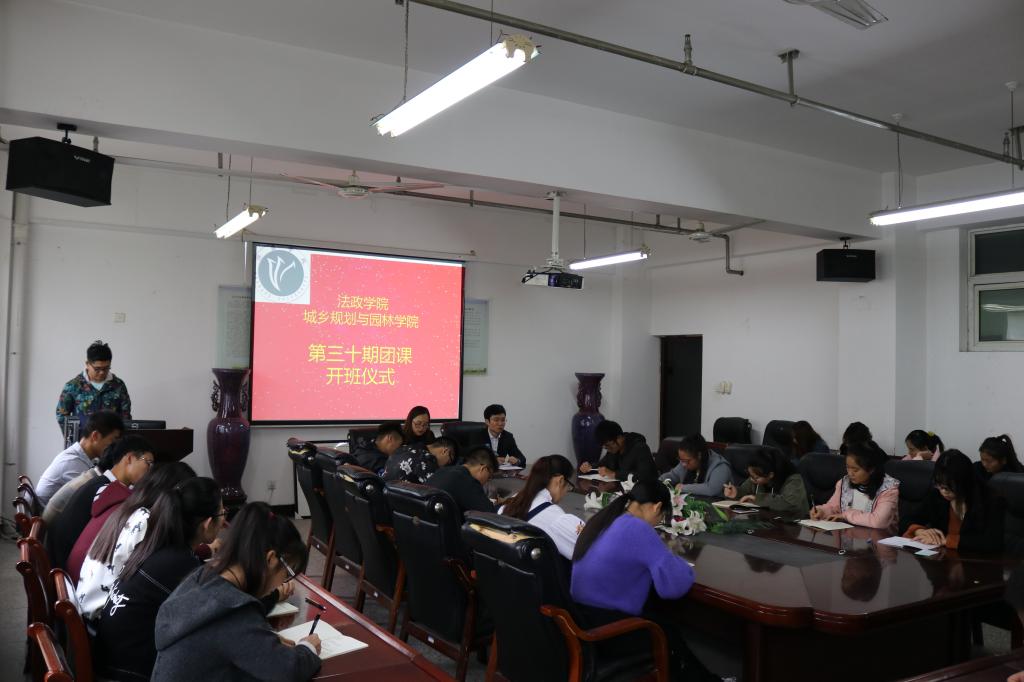 为进一步加强团员的政治思想观念,充分发挥团组织教育青年的功能,进一步加大对团员青年、 团学干部的培养教育力度,增强团员对团组织的深刻认识。2017年10月14日上午9时,我院和城乡规划与园林学院在城规楼二楼会议室联合举办“第三十期团课开班仪式”。我院团总支负责人孙晨赫与城乡规划与园林学院团总支书记赵学琴以及全体团校成员参加了此次开班仪式。