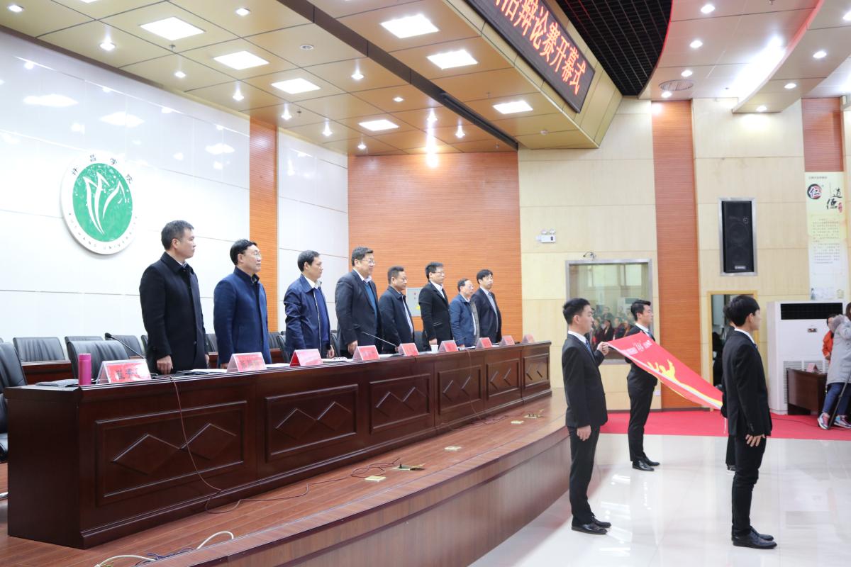 开幕式伊始,全体人员起立,隆重迎接赛会会旗。随后,我校党委副书记孙海致辞,他对省司法厅、省普法办、省法学会及全体参赛人员的到来表示热烈欢迎,并着重介绍了我校的整体情况及法学学科的建设与发展。他表示将秉承办赛原则,发挥好承办方的应有作用。在参赛学生代表及评委代表宣誓后,法政学院院长崔秀花宣布河南省第四届“卓越杯”法治辩论赛正式开幕。