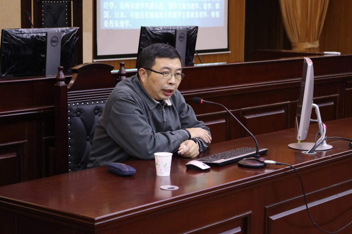 苏亦工教授首先对先秦儒家思想进行溯源,认为儒家思想来源于对西周德仁礼思想的继承,它主要是一种道德伦理思想和教育思想。接着讲述了儒家思想发展的历史脉络,在历史发展中,儒家思想不断吸取与之对立的流派的思想完成一次次自我超越,焕发出新的生机。在报告中,他以王阳明的理学思想为例论述了儒家思想推衍到宋明理学时通过反省内心而“致良知”思想主张的发展过程。