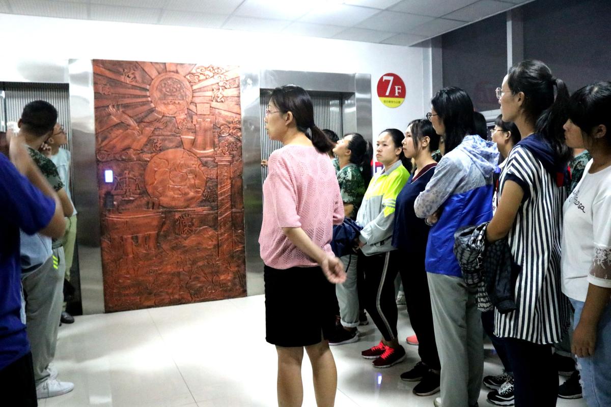 下午六点,18级新生们前往文综楼七楼参观。法政学院李杰老师在此等候新生并对大家的到来表示欢迎。为使刚刚步入大学校门的新生们更好地明白学习法学的目的和意义,李老师带领大家参观了七楼的浮雕墙,并现场讲解了浮雕上独角兽的历史渊源与象征意义。随后,李老师带同学们参观了模拟仲裁庭和诉调对接工作站,介绍了我院的基本情况,并激励大一新生奋发图强,勇于争先。她要求大家在学习专业知识的过程中不断完善自己,培养良好的法学思维和法律素养,为自身的发展奠定基础。