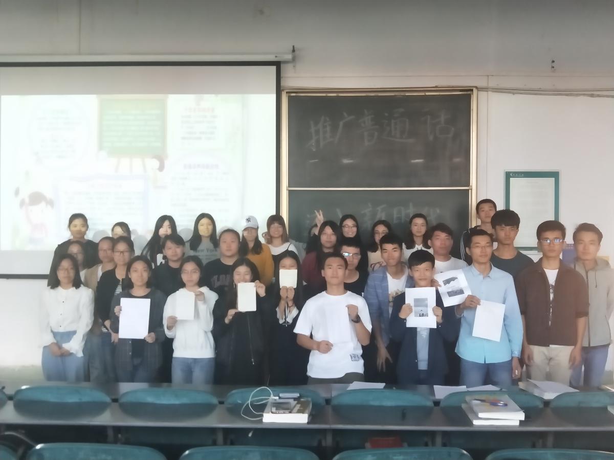 为更好地推广普通话,把普通话带进校园,2018年9月21日,17级法学三班全体成员在A合十七教室举行了以“推广普通话,迈进新时代”为主题的活动。 本次活动以宿舍为单位分组。