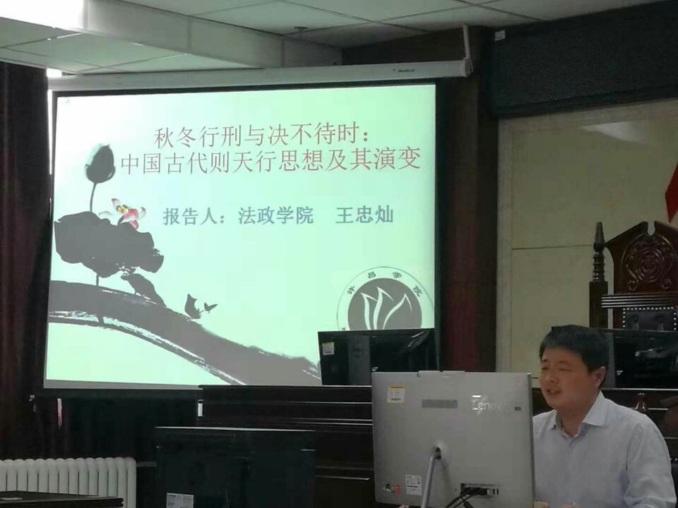 10月12日下午4时许,法政学院筹备已久的“法象行思”论坛开讲,第一讲主题为“秋冬行刑与决不待时:中国古代则天行刑思想及其演变”,由我院教师王忠灿博士担任报告人。论坛在文科综合楼716模拟仲裁庭举行,法政学院党总支书记唐战立、院长崔秀花和法政学院全体教师参加论坛。